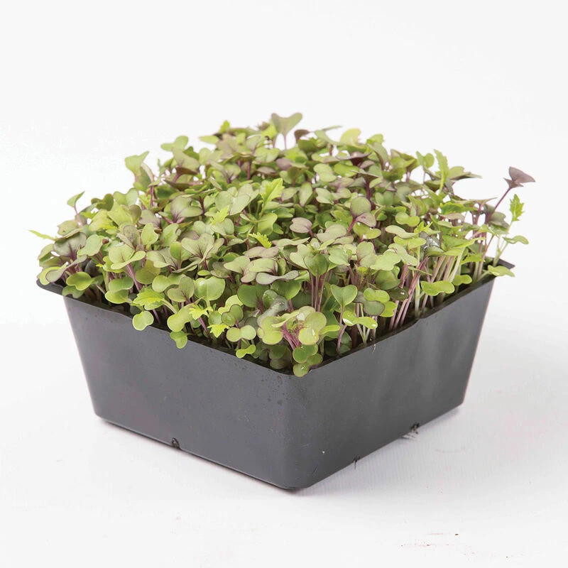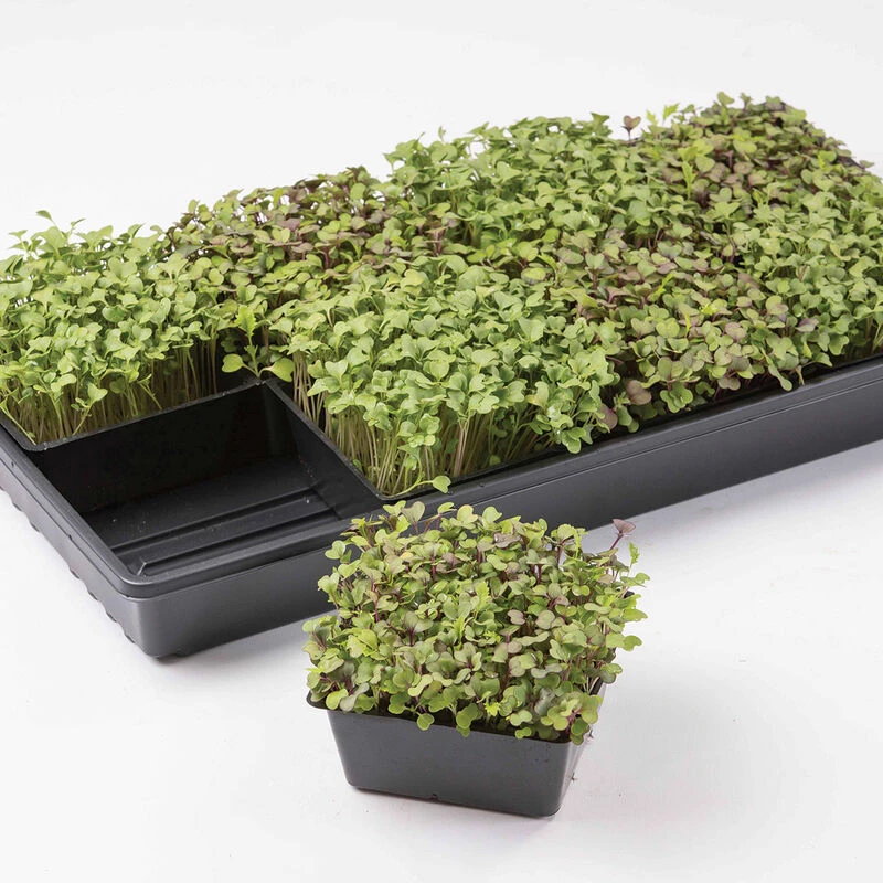 Lightweight thermoform plastic inserts perfect for direct sales to chefs or for staggering small microgreen plantings for continuous harvest. Each flat splits into (8) 5″ x 5″ containers which fill standard 1020 trays. NOTE: Must be used with a leakproof 1020 bottom tray or mesh tray. Dimensions: 21.5″ L x 10.5″ W x 2.5″ H. Quantity: 100 flats.