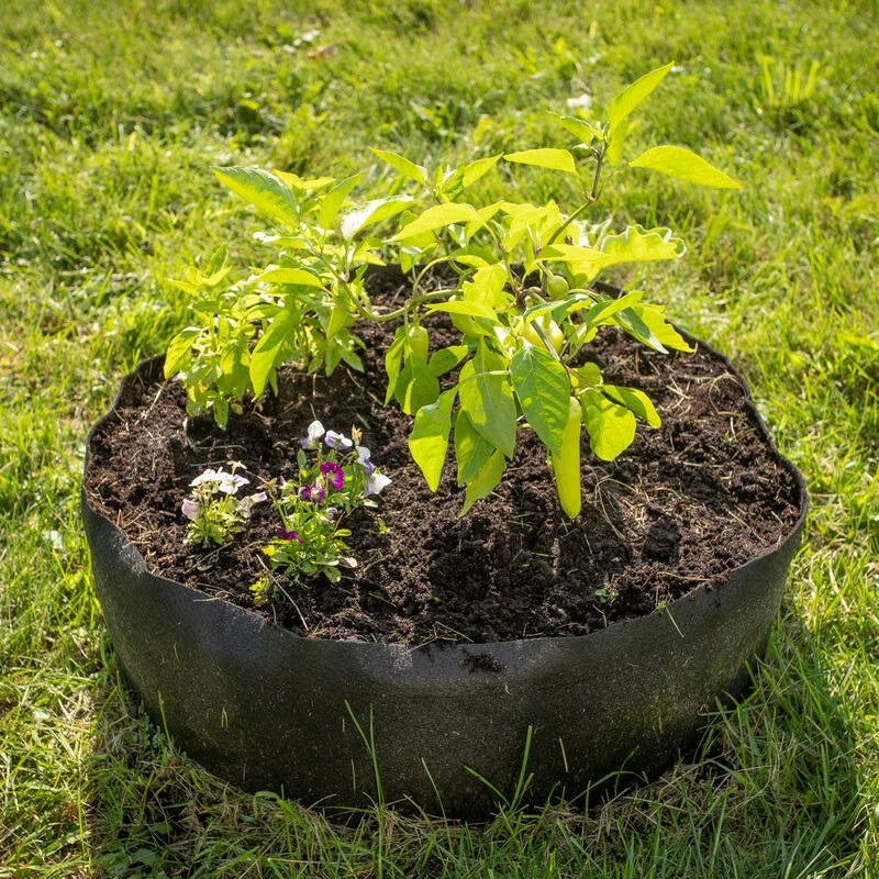 Simply unfold, fill with your favorite potting media, and plant. Made from durable, weatherproof fabric that provides excellent drainage, warms quickly in the spring, and releases excessive heat in the summer through evaporative cooling. Use season after season for growing your favorite vegetables and flowers. 8″ H x 24″ diameter. Holds 2.1 cubic ft. of soil. Made in USA.