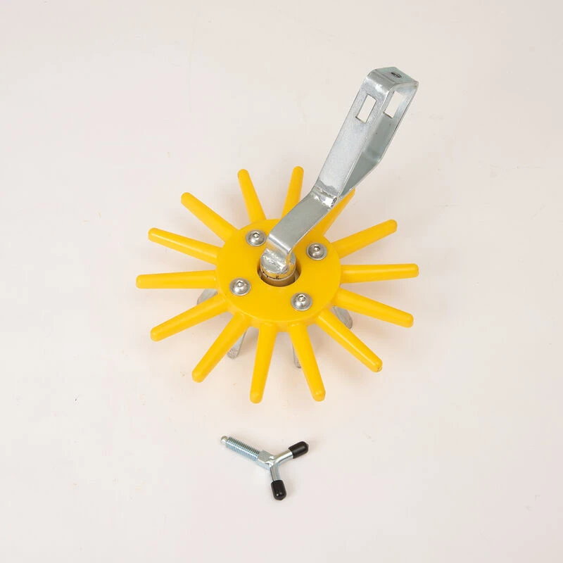 Set of two finger weeders, upright brackets, and Y bolts. Does not include mounting arm or toolbar (both required for use). Stiff fingers. For medium to heavy (hard) soils. Yellow. NOTE: For use with the Terrateck Double Wheel Hoe only. Also available in a model designed for soft or sandy soil.