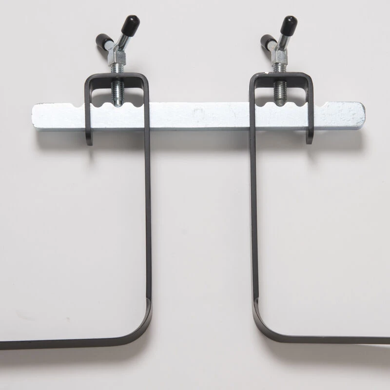 For use with Terrateck Wheel Hoes only. Used to straddle plants with vertical habit (e.g.: beets) that are 2-6″ in width. Blades may also be faced inward, using the extra-wide tool bar, for horizontal plant habit (e.g.: lettuce). Includes set of two blades (left and right), 10″ toolbar, and two Y-bolts. Made in France. Formerly known as “Lelievre Sweeps.”