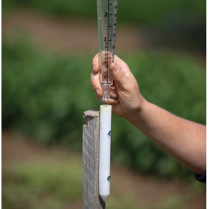 With this gauge and a good thermometer you can have a valuable mini weather station at home. Clear acrylic, accurate to 1/10″ rainfall or sprinkler coverage. Capacity 5 1/2″. Includes a stake and screws for in-ground or post mounting. Do not leave out in freezing weather.