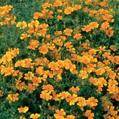 Hundreds of petite flowers cover neat, low mounds of lacy foliage with a citrusy scent. Long-blooming for beds, borders and containers where it attracts beneficial insects, such as ladybugs, hoverflies, butterflies, predatory bugs, and parasitic wasps. Leaves of the plant are edible and are used as flavorful salad greens and garnish. Also known as signet marigold.