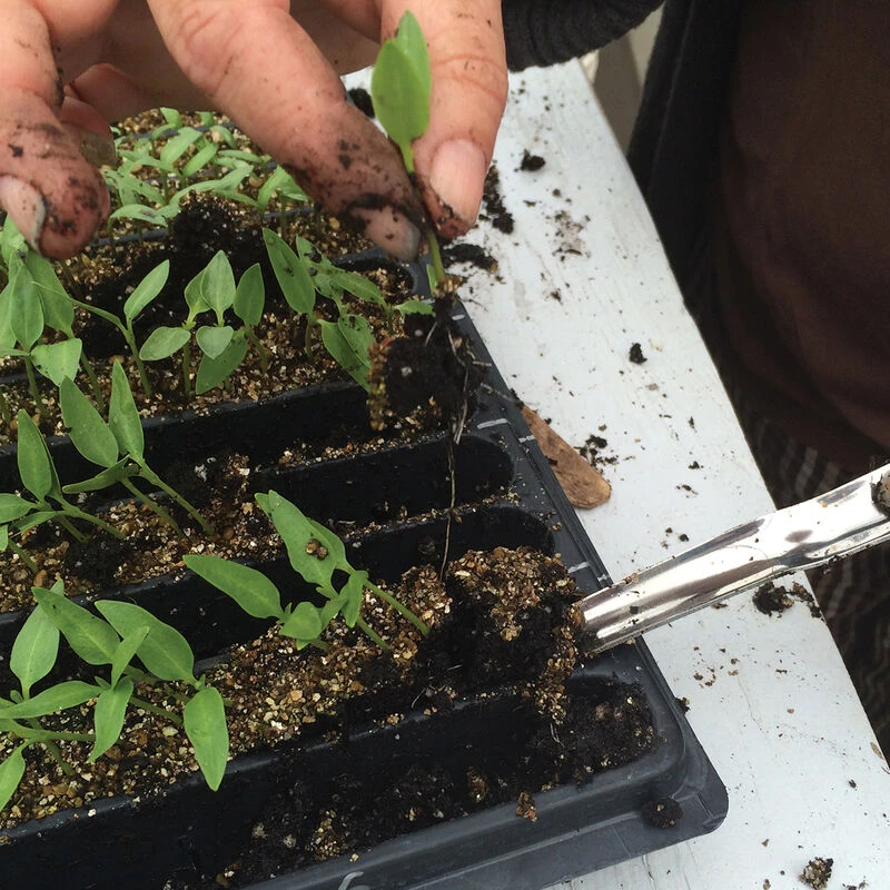With its unique convex stainless steel blade, it is ideal for delicately separating seedlings, especially when potting up from a 20-Row Seed Flat. It can then be used to dibble holes for the seedlings in a larger-celled flat. Also great for handling and planting seeds.